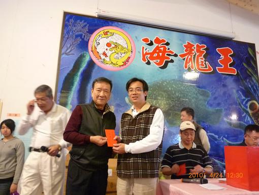 接著理事長感謝本會顧問、諮詢委員、理監事們及磐亞公司陳清風總經理贊助活動摸彩獎金,文鴻公司龔建榮理事贊助全場飲料,強地公司周政宏理事加贈兩項摸彩獎品,隨即開始大家最期待的摸彩活動。