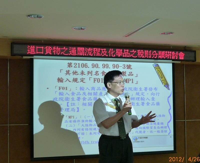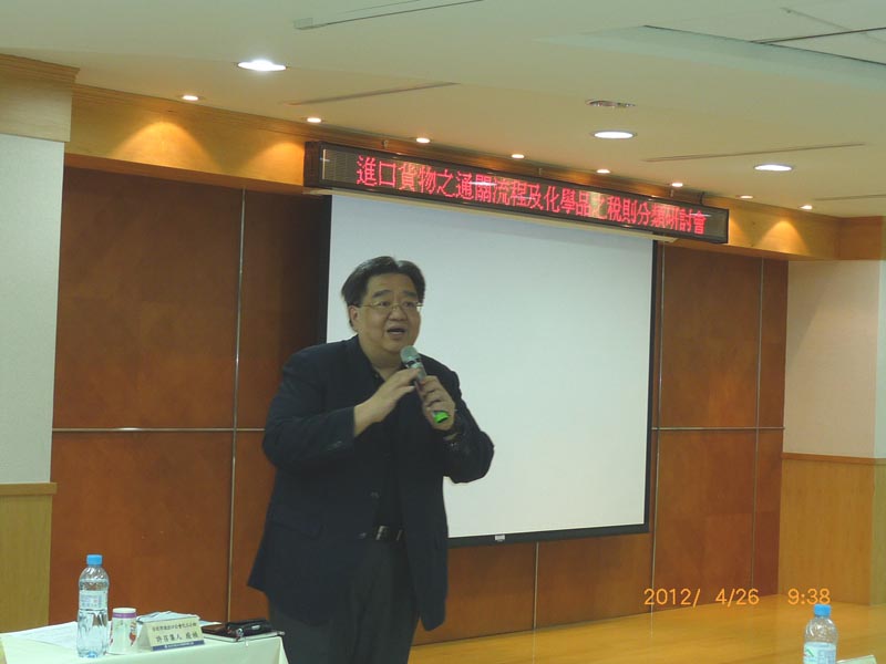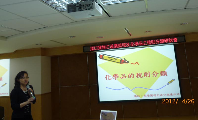 本次說明會分兩個單元,由黃國珍課長主講【一般進口貨物通關作業、適用ECFA優惠稅通關作業、通關作業透明化、AEO 優質企業】部分;陳玟玲股長主講【化學品的稅則分類】部分。兩位主講人除準備詳細的講義,更以實例解說,為大家解惑。